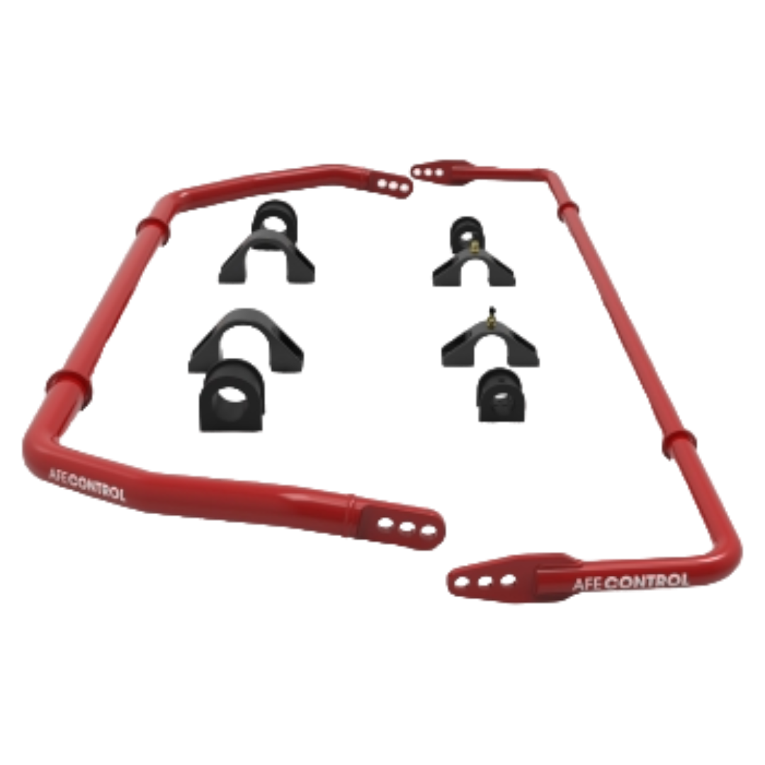 aFe CONTROL includes low-deflection polyurethane bushings and premium 6061-T6 aluminum black anodized billet brackets. Rear brackets are equipped with grease fittings for easy maintenance.