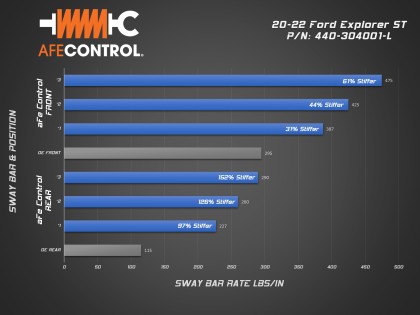 Dramatically reduce body roll without sacrificing ride quality with aFe CONTROL’s Explorer ST sway bars. Our 3-way adjustable front & rear sway bars will allow you to easily dial in the handling balance of your ST. Sharpened steering response will improve initial turn-in making your Explorer feel lighter and more agile. The added stability and control are also welcome when hauling loads on your roof rack or towing.