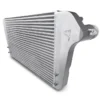214% greater volume and 260% greater frontal area compared to the OEM intercooler (cooling area is 26.5″ x 15.75″ x 2″)
