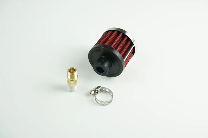 This allows the Damond Motorsports OCC to vent pressure when excess pressure is present in the crankcase. This option contains a VTA breather filter and check valve. The check valve allows one way flow of pressure out of the can, while the filter keeps debris away from the check valve. The filters are completely washable and re-usable.