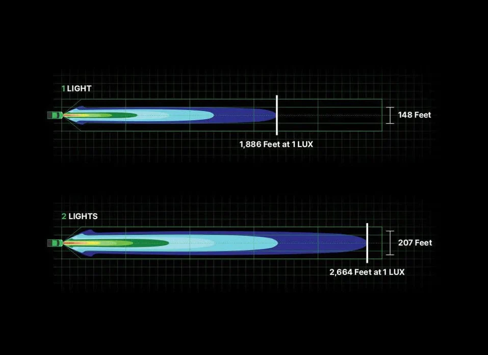 - Lights have a combo beam pattern and are rated at 15,000 lumens raw