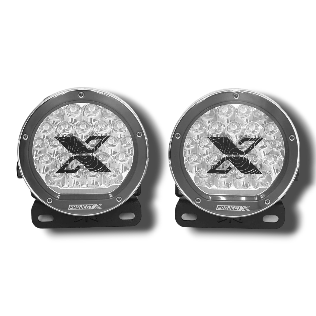 The RTR Front Bumper Light Mount Kit w/ PROJECT X HP.70 Lights is designed using OE Manufacture CAD data and is installed with high-quality hardware and mounting points. Aftermarket forward facing lighting laws vary based on state/region. Please check your local laws and regulations for installation requirements prior to purchasing. There is no modification required for a clean, straight forward installation.