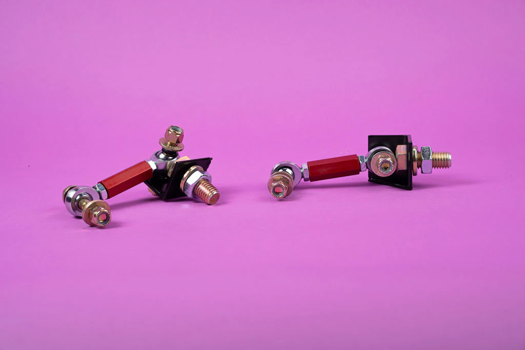 The first aftermarket option for the Focus ST that correctly positions the end links to prevent binding and reduces snap oversteer. Increase grip and traction with these adjustable end links! If you have ever broken your OEM end link you know that the factory design and almost all other aftermarket solutions thus far rely on a single heim joint and a set of bushings. This causes severe binding on the sway bar as it travels through its range of motion. This leads to reduced handling and premature failures of end links!