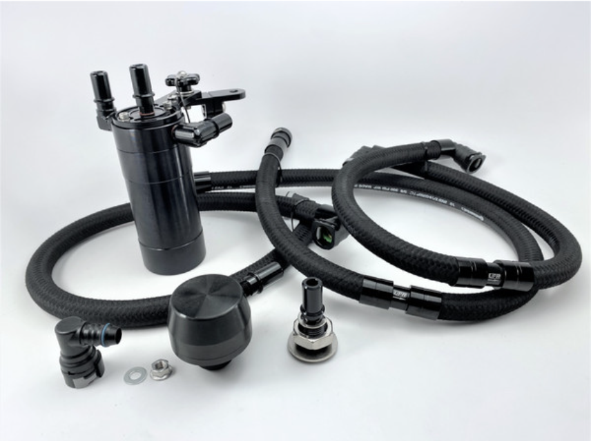 The Dual Valve catch can will not only separate oil mist and combustion byproducts during low speed driving and idle (when there is manifold vacuum present) it will also allow circulation and crankcase evacuation when under BOOST. The UPR Clean Side Separator goes a step further by reducing oil intrusion into the intercooler and air box.